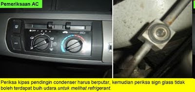 Apa yang perlu dibuat.. First...Hidupkan temperature max dingin dan max blower. Periksa kipas pendingin condenser harus berputar, kemudian periksa sign glass kondisi tidak boleh terdapat buih udara didalamnya.kalau berbuih-buih itu tandanya gas dah nak habis... atau terdapat kebocoran gas berlaku pada pipe..